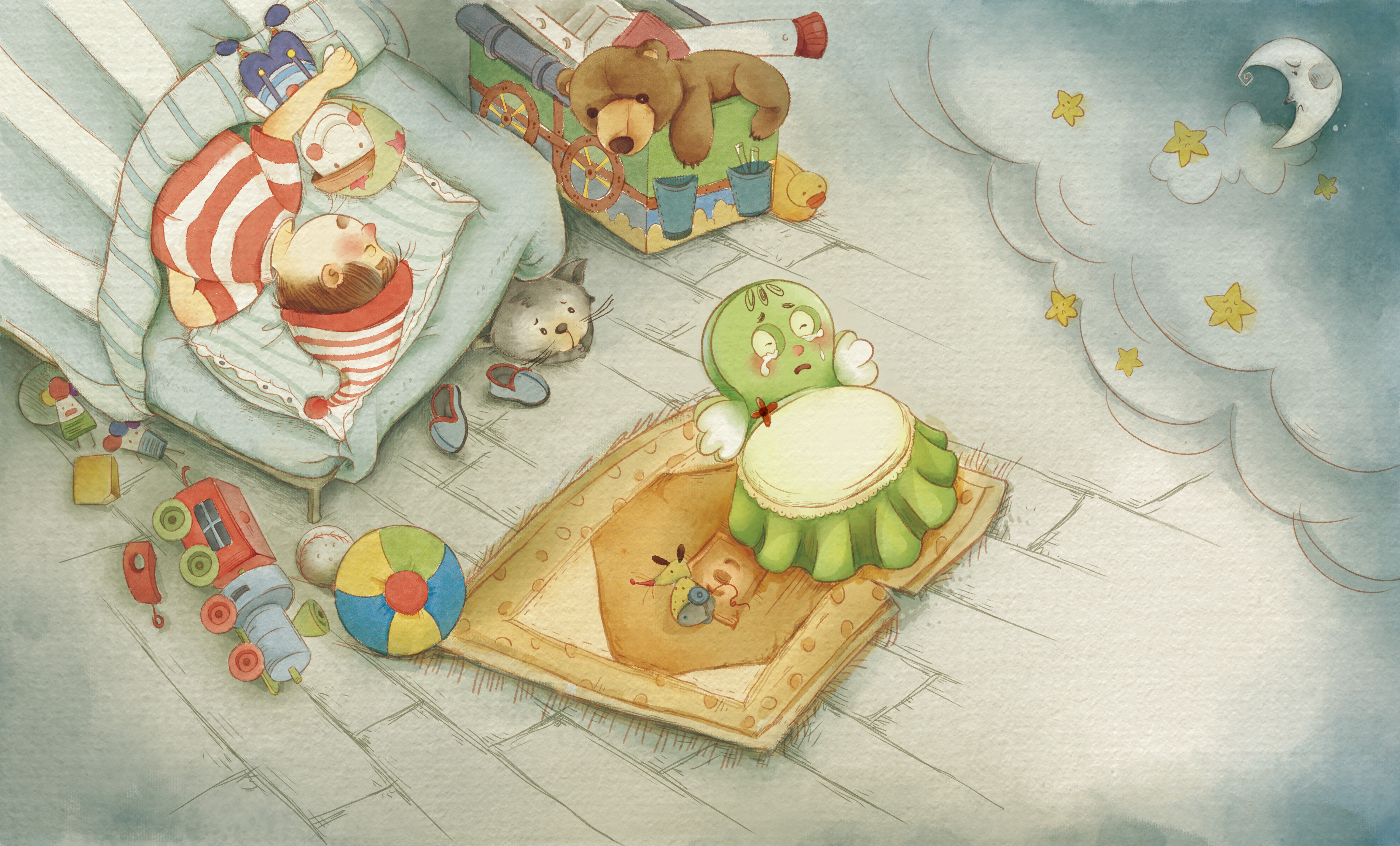 The skilled grandfather, a master carpenter, crafted two exquisite little chairs named Mumu and Moyle. He proudly took them to market and successfully sold them. However, Mumu and Moyle, made from the same wooden piers, shared a deep connection and dreaded the prospect of separation. The story unfolds around the theme of separation and reunion...